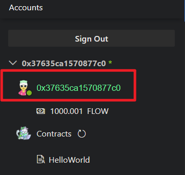 登录认证后，可在此面板查看当前登录账户地址，Flow 余额以及账户上的合约。